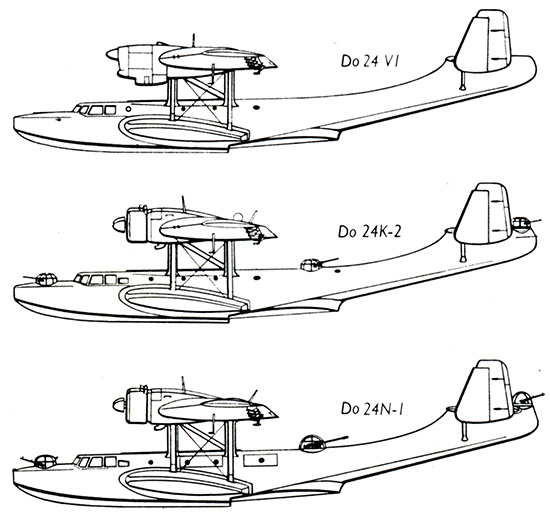 Do 24 V1-V4 ab Juli 1936 Do 24 K-1 / K-2 s ab 1937 Do 24 N -1 ab Aug 1941 Do 24 T-2 ab 1943 Do 24 ATT ab 1983 |